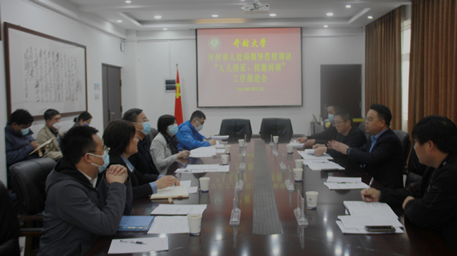 宋曉煒對我校“人人持證、技能河南”工作提出了四點要求,一是要全力推進、加快進度,夯實基礎、做好各項準備工作;二是要落實文件精神,讓畢業生享受政策,做好畢業生取證工作,支撐就業、打好第一槍;三是要主動承擔社會責任,打造“一個證書、一個品牌”,高質量完成“人人持證、技能河南”工作;四是要全力以赴、調配人手,統籌人力、物力集中攻堅,做好開封市高職院校“人人持證,技能河南”建設工作的開路先鋒和排頭兵。