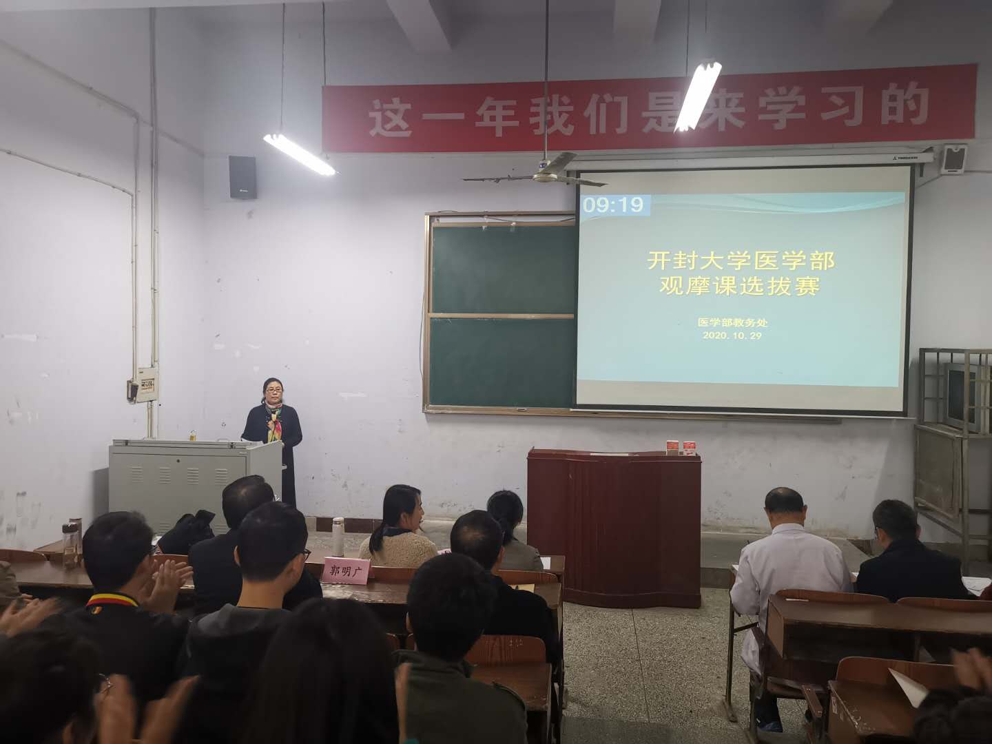 選拔賽由醫學部教務處馬惠萍科長主持,教務處工作人員負責場間各項工作,并邀請了各教研組資深教師擔任評委。學校領導對本次觀摩課評比高度重視,校黨委委員謝文忠、醫學部副主任郭明廣親臨現場聆聽觀摩課,并對選手表現進行記錄點評。