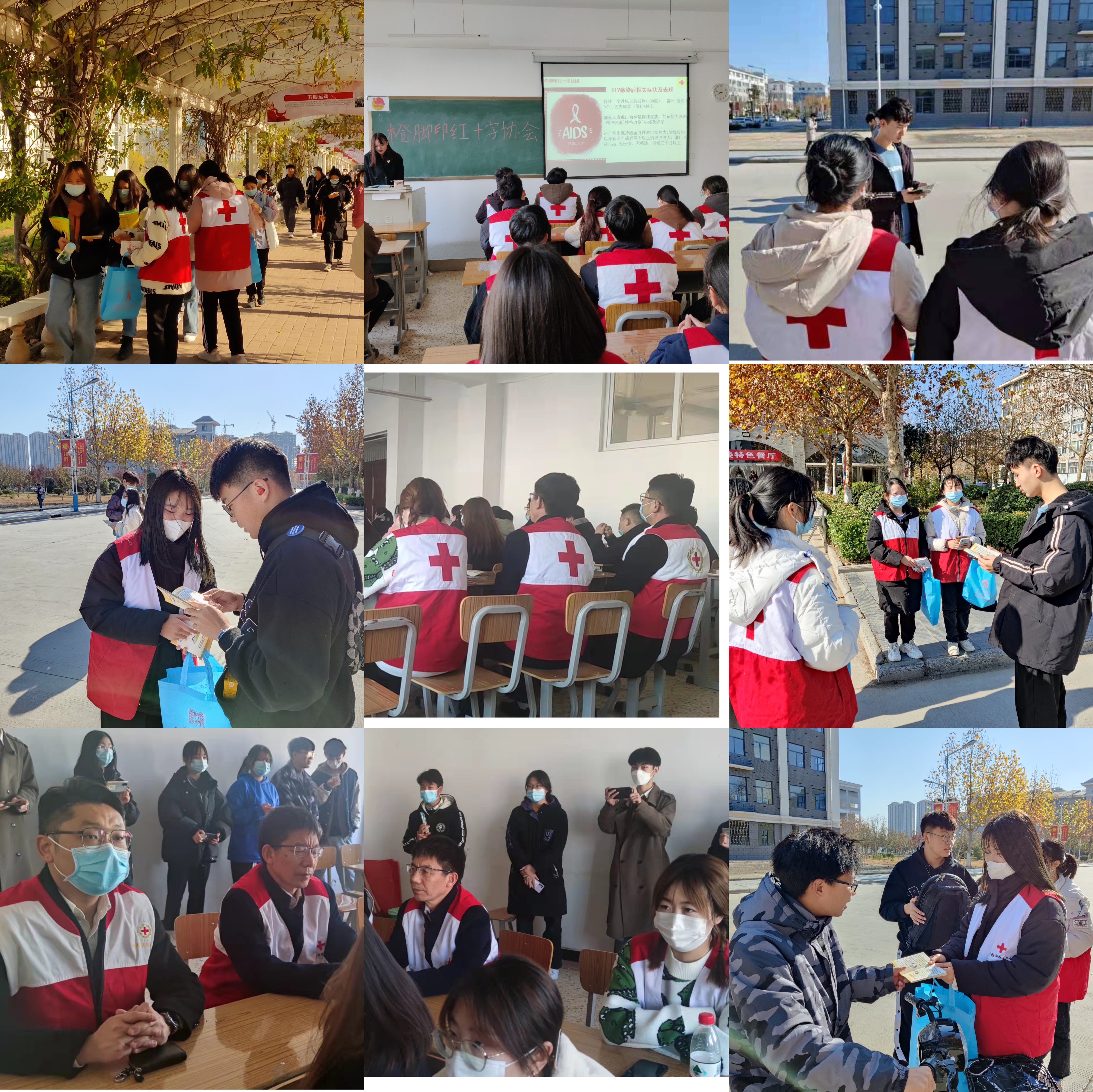 活動中,通過設立咨詢臺、發放宣傳折頁和宣傳品等形式,宣講艾滋病防治知識,讓同學們進一步了解到艾滋病的現狀、艾滋病的傳播途徑及預防措施。在醫學部學生黨支部副書記厲從志、社團指導老師王安寧、翟堃老師及橙腳印紅十字協會社長呼雨航的帶領下組織學生觀看“生命至上、終結艾滋、 健康平等”的宣傳片,收到了良好的宣傳效果。參加活動的21級醫學影像技術專業邊家衛同學說“我對艾滋病不是全面的了解,通過這次的宣傳之后,讓我對艾滋病有更深得了解,我們要潔身自愛,保護自己。”