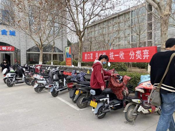 圖為20護理4的同學在16號樓門口和東餐廳門口擺放車輛。