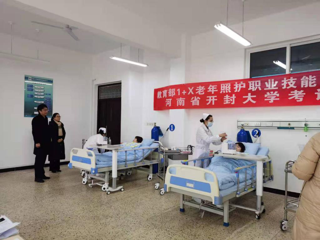 為深入貫徹《國家職業(yè)教育改革實施方案》和教育部等四部門印發(fā)《關于在院校實施“學歷證書+若干職業(yè)技能等級證書”制度試點方案》,按照教育部“1+X”證書制度試點工作推進要求,2020年12月16日、17日,我部開展了“1+X”老年照護職業(yè)技能等級證書(中級)考評工作。開封大學教務處處長馮天才親臨現(xiàn)場,對本次考評工作進行督導,強調(diào)了考場紀律和工作要求。本次考評分為理論和實操兩部分,醫(yī)學部共有50名學生參加,通過率100%。